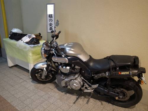 とみきち氏が亡くなられたのは3月23日(木)、仕事中の心筋梗塞での急逝との事。26日に行われたお通夜には都合がついたメンバー5名で参列しました。会場前には愛車MT-01が飾られ、司会者は何度も