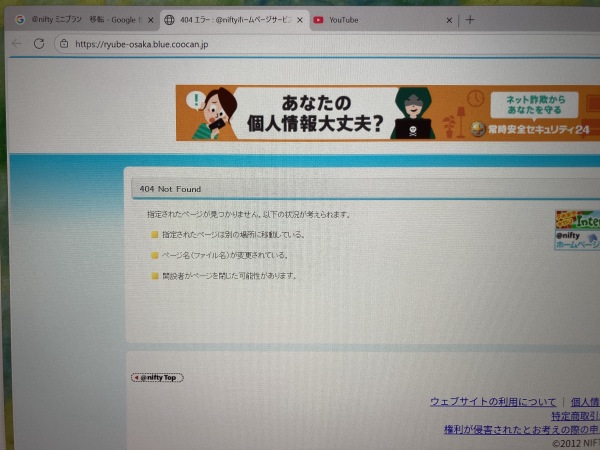 こっ恥ずかしい冒頭の説明は最後に。サーバ移転の顛末を改めて御説明します。10月1日(水)突然旧サーバでのホームページ表示がなされなくなりました。原因はサーバを運営していた@Niftyが長年維持してきた”ホームページ無料プラン”を停止した為。