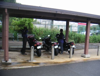 Tは既にGPZを準備して待っている。「やっぱり俺の言ったとおり(雨が残っている)やろ!」との弁。ごもっともです・・・。西名阪自動車道を経由して、香芝SAにはほぼ予定通り7時少し前に到着。