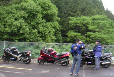 香芝SA一番奥のバイク駐車場まで進めると、果たして赤/黒のZZ−R1100が既に止まっていた。「はるさんですか?」「はい、そうです」メールの雰囲気通り落ち着いた感じのはるさんであった。自己紹介をして、しばしバイク談義をした後、出発した。