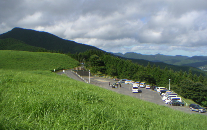 久しぶりにかっ飛んだ。怖かったけれど楽しかったなあ。曽爾高原到着は8時15分。他のメンバーは全員到着していた。皆揃ったところで記念撮影。通りすがりの若い爽やかなお兄さん(宿舎のスタッフ?)、シャッター押して頂いたありがとうございました。