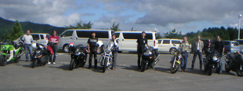 | 当初の参加表明よりも、だいぶバイクが増えている(笑)。蓋を開けてみないと幹事であろうが参加者総数が判らないのがRYUIBE大阪の良いところ。今回参加者は以下の通り。 ケロリン@VTR250、ルーキー氏@CBR、ルーキー奥様@ハーレー(!)、丸さん@CBR、初参加のこたやん氏@ベクスターまでは参加表明あり。プラス、黒隼氏@隼、ren氏@ZZR1400、JUN氏@Z1000、そしてここまで一緒に走ってきたヤッシャー氏@GPZ900R、やはり見送りに来てくれたとみきち氏@CBの合計11名。 皆さんから「あれ、ミミオさん今日はいてへんかったと思ったけど?」 「いったいどうなさったのですか?」 「幹事が遅れたら困るよ」 等々・・・。 これは弁解の余地無しです、参加者の皆さん申し訳ありませんでした・・・。とみきちさん、お見送り頂いたのに大変失礼致しました。 |