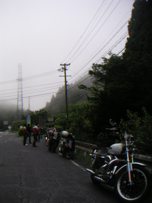 | 青山高原に近づくにつれ、あれだけ晴マークだった天気が怪しくなってきた。青山高原道路入口ではついに小雨+ガス。これ以上登ってもメリット無しと判断。青山高原はパスして次の目的地曽爾高原を目指す事になった。 名張までの国道165号、今回初参加ルーキー奥様の後ろを走らせて貰う。1200ccのハーレーをワインディングで軽々操り、車をパスするのもズバッと躊躇無く。観ていてホレボレするライディングであった。旦那様と二人で走りに行く時は”もっと速く”とハッパを掛けられるらしい。温厚ジェントルマンのルーキー氏のご発言とは思えない(笑)。お互い切磋琢磨してかっとび夫婦になったそうな。羨ましい限りだ。 名張手前でそろそろ良いだろう、と信号待ちで車をパスして前に出る。後ろからは黒隼氏が追ってきた。暫くご一緒する。夏見で県道81号に折れる頃には黒隼氏が先行。御体とバイクどちらも重量級であるが、それを感じさせない相変わらずのハイスピードだ。 |