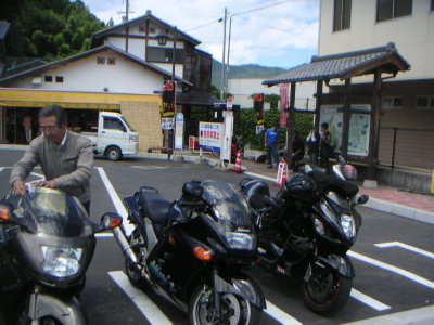 | 国道369号〜県道218号〜国道166号の超快走路。黒隼氏、丸さんの3人走行。市販車最高速を記録した、元・前・現車両3台。”元”として頑張ったが乗り手の違いか、先行する二人はどんどん先に行ってしまう。 予定よりも若干早い10時過ぎに「道の駅大宇陀」に到着。到着してすぐにルーキー夫妻が到着。ムムム、こちらは結構なペースで走ったつもりだったのだが。ルーキー氏はともかく奥様@ハーレーが我々とほぼ変わらない到着時間とは・・・。 ケロリンは名物「きみごろも」を買いにいくも空振りだったようで残念がっていた。あれ、ヤッシャー氏とこたやん氏は??暫くして二人が到着。なんでも県道218号を曲り損ね榛原経由で走ってきたらしい。走るのが大好きなお二人、回り道をしても嬉しそうだった。 |