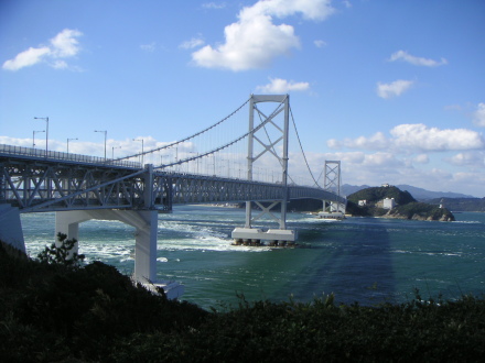 バイクを止めて一休みすると、いつの間にかバイク談義になるのは毎度の事。 オイルの話、ETCの話等々寒さも忘れて話し込む。 一段落ついた所で出発。 海沿いを走って鳴門海峡の道の駅「うずしお」には30分程で到着。