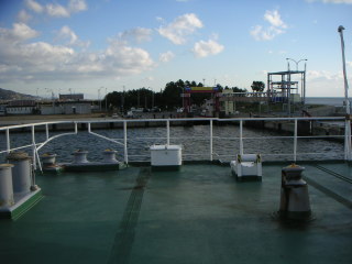 泉佐野南ICを降りて南海淡路フェリー乗り場には6時頃到着。乗り場には既にヤッシャー氏が到着していた。バイクに乗っている時はそうでもないのだが、出航待ちでジッとしていると体の芯まで冷えた。 6時半に泉佐野港出航。来年の1月31日でこの航路は廃止になる。恐らくこのフェリーに乗るのも最後だ。航海の合間に感慨に浸りたい所だが、眠かった私は熟睡させて貰いました。