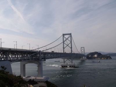 今回不参加の企画部長が残したスケジュールは、岩屋から反時計回りに淡路島を一周するルート。そのルート通りに県道31号線〜県道25号線を使って鳴門海峡大橋が一望できる道の駅「うずしお」を目指す。県道31号線は海の眺めが良い快走路。但し淡路島西海岸の生活道路でもある為にこの日の車が多かった。暫く走るとたこフェリーで一緒だったバイク3台の一行が遅い車数台に引っ掛かっていた。暫くそのグループの後ろを走るのだが抜く気配が無い。10分程我慢していたが、イライラして見通しの良い直線で本能的に(無意識に)まとめて追い越した。後ろを見るとRYUBE大阪のツワモノ面々に続き、3台の一行も一緒になってついてきた。慶野松原まで6台+3台の9台でガンガン走った。