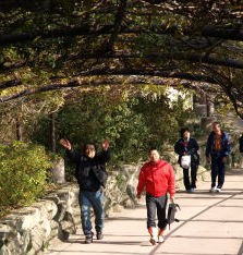 ご機嫌に公園を歩く黒隼氏とビリケン氏。 |