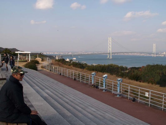 津名で昼食を取った後は津名一ノ宮で高速に乗る。ren氏とビリケンさんは当然、それまで比較的大人しかった黒隼氏とはるさんも甲高い音をたてて先に行ってしまった。淡路SAで最後の休憩。多少靄が掛かっていたが明石海峡大橋が綺麗に見えていた。