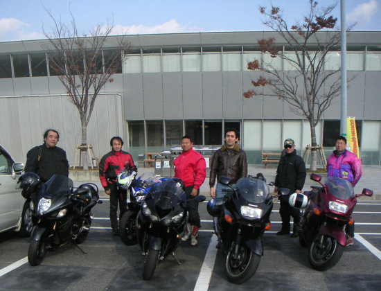 県道76号に入るとren氏@ZZR1400とビリケン氏@GSX-R1000、それにRip氏@SRX600がすっ飛んで行った。休憩場所の灘黒岩水仙郷に最後尾で到着するとカメラを構えるren氏の姿が・・・。そうして撮ってくれたren氏の今回参加メンバーの写真をご紹介(尚、レポートの写真も多数ren氏から提供して貰っている)。