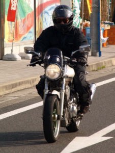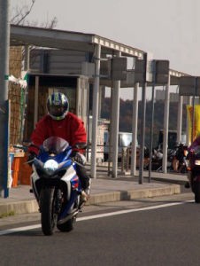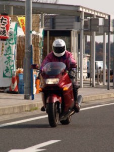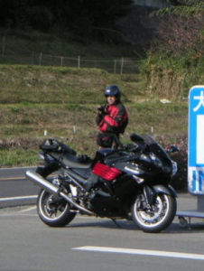 当日朝6時半に出発。前々日に息子が入院し、急遽淡路島には行けなくなった企画部長。幸い息子の体調も回復し、家庭内決済で集合場所の明石・タコフェリー乗り場までは見送りに行けるようになったらしい。阪神高速堺線〜神戸線を経由して明石に向かう。神戸市内に入った辺りで後ろからHIDまぶしい黒づくめの物体がついてきているのに気がつく。 バイクも体も大きく、バックミラー越しに一目で黒隼氏だと判る。