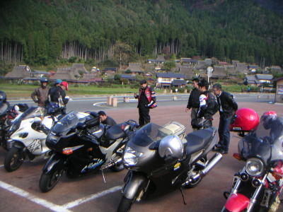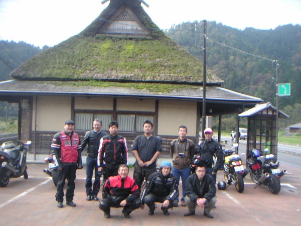 | ほぼ予定通り、9時過ぎ目的地美山町・北集落駐車場に到着。企画部長ケロと黒テン氏がお出迎え。RYUBE大阪、総勢10名ここに集合!・・・そして30分後の9時半解散。・・・皆さん面目無い。代表(一応)と企画部長はいの一番に、皆さんのお見送りを受けながら帰路につく。 |
