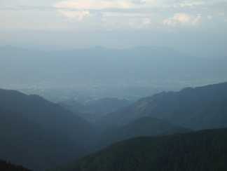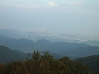 尾根に上がると左手には紀ノ川沿いの街並み、右手には大阪湾沿いの街並みが広がる。余計な言葉は要らない。とにかく絶景なのである。実はここは隠れた夜景スポットでもあり、空気の澄んだ日には、神戸から海南あたりまでの夜景が一望できる。そのスケールは、夜景で有名な神戸や函館の比ではない。「光の海」という表現が最も適していると思う。 ←展望台から大阪方面を望む。 |