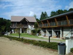 塔原から府道39号線をしばらく走り、次なる目的地・「ほの字の里」に到着した。ここは元々は「貝塚市立蕎原小学校」があったところで、その廃校跡地を利用して体験型施設としている。Mr.Tは縁あって、廃校直前の蕎原小学校に来たことがあるのだが、校庭と体育館は当時の面影を残している。 ←宿泊棟。元々ここには古ぼけた木造の校舎があった。 |