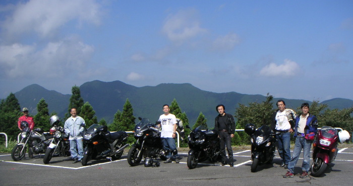 今回のツーリングの趣旨は2つ。ひとつは連日の猛暑の中少しでも涼しい所へツーリングに行こう、という事。そしてもうひとつは、2児パパライダー・企画部長Tが一大決心(血迷った?)、愛車を買い換えた。そのお披露目をしよう、という事。この企画に今回7名のライダーが手を挙げた。