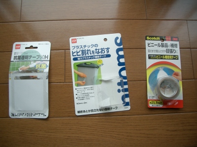 >これも一応何枚か製作しています。「ニトムズ 強力プラスチック補修テープ」という商品。