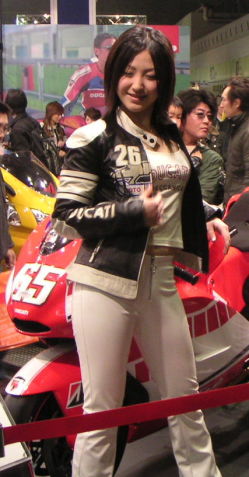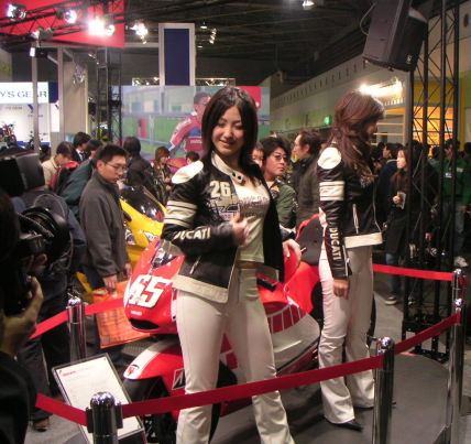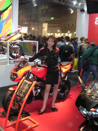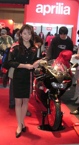 ドゥカティとアプリリアのブースは、そのコンパニオンに特に力を入れていた(ように感じた)。 特にアプリリアのコンパニオンのお姉さんの色っぽさといったら・・・。 この時ばかりは私も、恥も外見も捨ててカメラ小僧ばりにそのお姉さんの写真を撮っていた。 しかし、あまりコンパニオンが可愛いのも考え物である。何台かバイクにも跨ってみたのだが、ほとんど記憶に残っていない・・・。 もっとも、私が興味のあるツアラーモデルが無かった事もあるのかもしれない。 ドゥカティやアプリリアはレッドバロンでは跨る事ができないので、ポジションを見るには良い機会ではあった(結構タイトだった。)