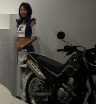 各ブースともかなりの人だかり。カクテル光線に華やかな演出。それに輪をかけてお祭り気分を盛り上げていたのが、各ブースのコンパニオンであった。 抜群のスタイルに際どい衣装。 そして何よりカメラを向けられるとポーズを取って目線を向けるところが、なにやらとっても色っぽい。 実は会場に入ってからカワサキ〜ハーレーのブースを回っている間に、人だかりの中で何度かTとはぐれて、携帯電話で場所を確認し合っていたのだが、ハーレーを過ぎたあたりから要領を得てきた。 Tとはぐれても、その近くでコンパニオンが派手に演出をしていれば、二人共そこに自然と足が向き、お互い探さなくてもすんなり合流できるという訳だ。 コンパニオンの力は凄いものだ。