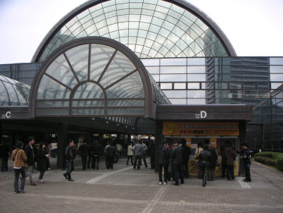 大阪南港のインテックス大阪前に到着すると、会場周りの歩道と、300円の有料駐車場にはバイクが溢れていた。 大阪の街中を走っていてもそれ程バイクは目立たないのだが、実際には凄い数のライダーがいるんだなあ、と感心した。 バイクを止めて、いよいよ会場に向かう。 会場周辺も凄い人の数に驚いたが、どうもその人だかりには2種類の人種に分かれている事が判明。 1種類はバイクのウェアを着て明らかに私達と同類だと判るのだが、もう1種類はどうも様子が異なる。 パンク系の髪型に、いわゆるコスプレのような格好をしているグループがあちこちにいるのである。よくよく確認してみると、同じ時期にGLAYのイベントが開催されていた事が判明。 多分お互い「変なヤツ」という目で見ている。