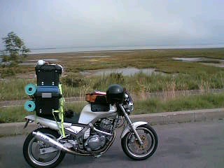 女の子はHONDAの250XTというモタードで、何と二週間近く北海道にいたそうだ。