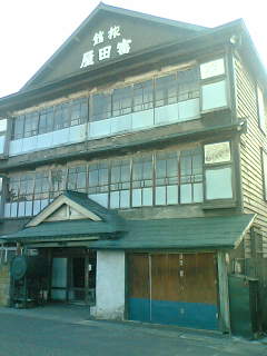 町は、国道にへばりつくようにたくさんの建物が並んでいるが、その後ろ側はやはりソバ畑なので、西部劇の町のような感じだ。