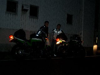 さて、出発日当日、3時30分に起床。走りに行く時はいつもする行動なのですが、まず天気を確認、んんっ、雨ぱらついてるやんっ!予定では5時10分発の徳島行きフェリーに乗るため4時20分にいつもの旧○ボタ前に集合。集合場所には5分もあればつく距離、ガレージからZRX1100を引っ張り出して荷物を積んでいる時に気が付いたのですが、知らない間に雨がやんで路面も乾きつつありました。
