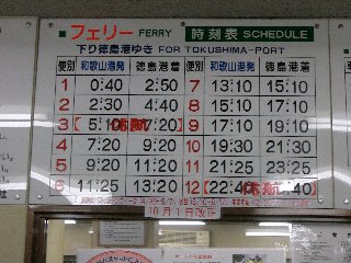 フェリー乗り場到着、我々より先に2台のバイクが待っていた。乗船手続きをするため窓口へ、え、まだ開いてない?何かおかしいので回りを見渡すと、「次の徳島行きフェリー 7時20分発」何っ?5時10分ってHPに書いてたやんっ!念のため時刻表を確認、5時10分って確かにあるんですけど年末年始、GW。盆の季節運行になってるっ!なんてこった!!