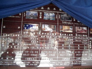 ここではまず建物の古さというか、独特の昔ながらの建築物に驚きました。写真では何度か見たことがありますがあんなに大きい建物とは思いませんでした。奥に長いんですねぇ。入浴パターンもいくつかあり、浴衣の貸してもらえるコースとか、お茶を出してくれるコース、個室や席を用意してくれるんですね。浴場も「神の湯」、「霊の湯」とあって、霊の湯は浴衣や席とセットもの、今回は神の湯入浴のみにしました。