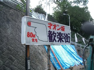 浴場は特に変わった所はなく、「東の湯」「西の湯」と2箇所あって、雰囲気は町の銭湯ですね。低気温の中の高速走行後だったので、疲れも少しですが取れて温まりました。温泉を出た後、バイクを止めた場所へ戻る途中、道後温泉本館の横の道を上がっていく時、気になる看板を発見!