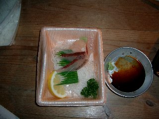 これが「とびうおの刺身」、味は青魚の味だけど鯖でもなく鯵でもなく。