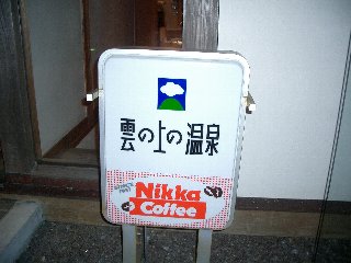 だいたい食べてから、今度は風呂に入りたくなる。幸いここを少し登ったところに「雲の上ホテル」というのがあって、そこの温泉「雲の上温泉」に入れるとのこと。ブラブラと歩くこと10分ほど、温泉到着。