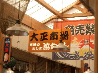 ここも観光地化されているのでしょうか?周りは人、ヒト、ひと、我々と同じ観光客なのか、地元住民が夕食の食材買いに来てるのか?とにかく車も人も多い。そんな商店街に突入、すぐに一軒食堂「浜ちゃん」を発見。