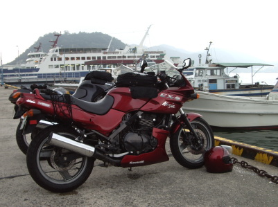 国道250号線は大動脈・国道2号線と平行して走るローカル国道である。ローカルと言えども明石から姫路に至る区間では、案外交通量が多いのだが、まだ時間は午前6時前。ガラガラの貸しきり状態である。姫路から網干に至る区間では、親切にも二輪車専用レーンが設けられている。11年前は大変お世話になったが、今日はお世話にならずに道の真ん中を爆走する。あっという間に市街地を抜け、道は海に到達した。 御津町から相生、赤穂を抜けて日生に至る道は「はりまシーサイドロード」と呼ばれる快適なワインディングロードである。EX−4の独壇場と張り切ってアクセルを空けたら、何箇所目かのカーブでセンターラインを大きく超えて反対車線へ飛び出してしまった。「アカンアカン。自制せな・・・」と気持ちを引き締め、慎重にコーナーをクリアしていく。午前6時15分、相生手前の室津という港町で2回目の休憩。昔ながらの港町の雰囲気がとても印象的であった。 |