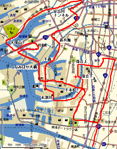 20分ほどで「安治川トンネル」の九条側入り口に到着。普段はエレベーターでチャリンコごと地下に下ろしてもらえるんですが、なんでも今工事中とかで、係員から迂回指示。約2.5キロ上流の船津橋へ回れとのことでございます。私ら「一見さん」はそれで特段大きな問題はございませんが、普段チャリで通勤通学してはる方々は一体どうしてはるんでしょう?