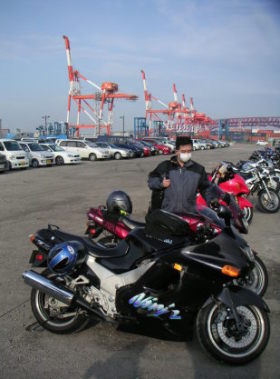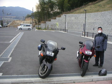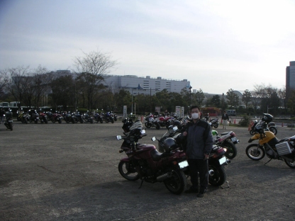 当日は朝5時起床。熱は38度まで下がっていた。それ程しんどくはないので、予定通り出発する。 天気予報は晴れであったが、外に出ると思いがけない寒さに震えた。それでも、ZX−11のカバーを外してエンジンを掛けて暖機運転を開始するといつもの心地良い、ピリピリとした適度な緊張感。体のだるさも寒さも、バイクに跨ると忘れてしまうところが、バイクの魅力なのだ。T宅には予定の6時より10分程前に到着する。 玄関を出てきたTは大きな白いマスクをしていた。 今回私も花粉対策ですっぽり花と口を覆うマスクをしてきたのだが、聞けばTも花粉症で苦労しているとの事。