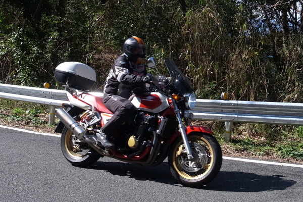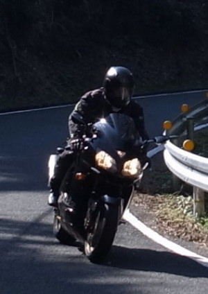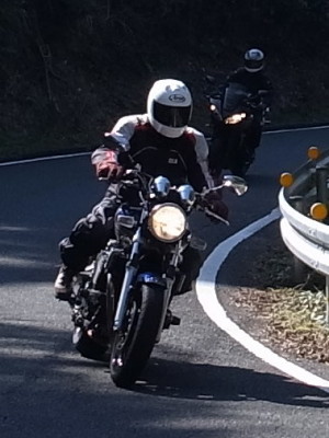 出発時間の13時には、はぐれていた方も合流。ここから次のポイント「白崎海洋公園」までが今回ツーリングのメインとなる。一歩先に出て皆さんを撮影。一応場所も選んだつもりだったがロケーションも含めてren氏やケロのように上手撮るのは難しい。撮影できなかった方、すみません。