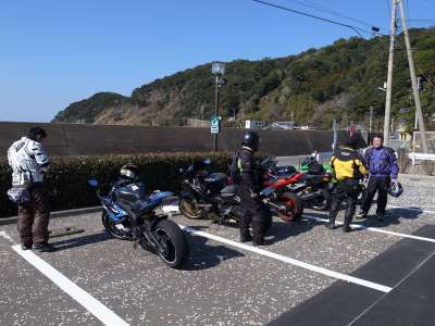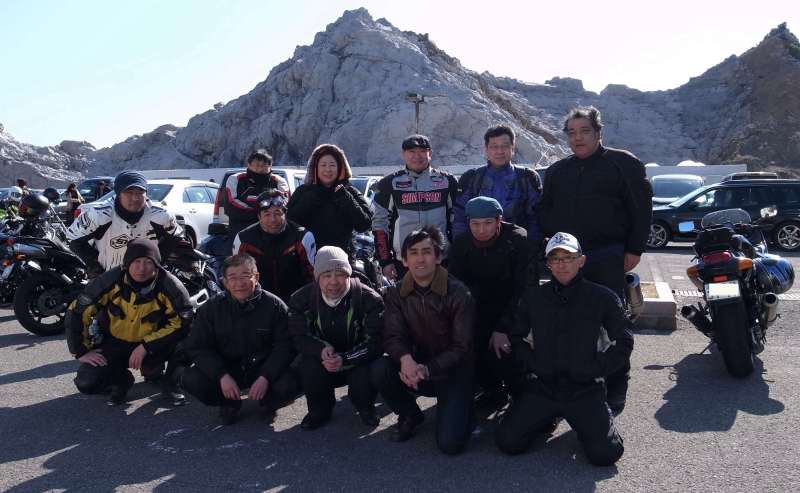 バイクの何と多い事!RYUBE以外にもいくつかグループが走りに来ていた。マッチン氏の事前情報通り「道の駅」は1月末で閉鎖になっていたが、この人の多さはにはビックリ。以前来た時はもっと閑散としていたのだが。ちなみに5年前来た時はここで和歌山市在住のアメリカ人、トムに出会った。今回も当時を知るメンバーは自然とトムの話題に。うえぽん氏情報だと今も和歌山市に住んでいて、3〜4回目撃しているそうだ。いつかトムと再会してみたいものだ。