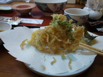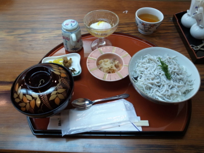 創業明治33年と、しらす丼に惹かれて決めたのだが、丁度法事と重なって出てくるのに時間が掛かった。「横楠」の為に弁護しておくと、事前に電話で問合せした際に「法事と重なる可能性がありますから、事前に注文頂けるとスムーズに行きます」と言われていた。何人集まるか、何人食事をするか当日にならないと判らないクラブの為、時間が掛かったのはお店のせいではない。しらす丼はボリュームはまあまあだったが新鮮で美味しかったし、しらすのてんぷらも注文後に揚げてくれたので美味しかった。てんぷら付のしらす丼定食で\1,200-は良心的だ。