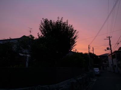 集合時間、道の駅「能勢くりの里」は6時半(これも繰り上げようとして脅迫された)。自宅から1時間あれば行く計算だが、折角の好天予報、朝日が昇ってから出発するのは勿体無い。4時半自宅出発、とびきり綺麗な朝焼け!丸さんと待合せの桃山高校前サンクスには20分程で到着。すぐに丸さんから電話「寝坊したから先に行って」との事。取り敢えず起きた事に一安心して出発。あべのから阪神高速に乗り、11号池田線を北上。思いの他ペース良く進み、集合場所の1km手前「ファミリーマート能勢下田店」には何と5時半過ぎに到着。ちょっと計算間違いしたかな・・・。