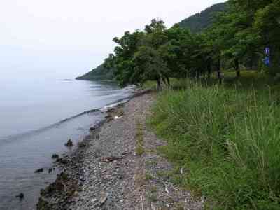 理由は琵琶湖湖岸、海津海岸に寄り道したかったから。この辺りは湖南とは違って人工物がほとんどなく、雰囲気が好きだ。一番人気が無いところでバイクを停めて、しばしたそがれる。 |