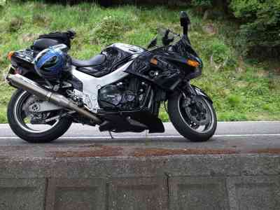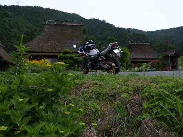 | かやぶきの里のような景色ではあまり似合わないZX-11だが、こうした日本の隅の方の小さな道に置いたら、結構様になるんじゃないだろうか? | |