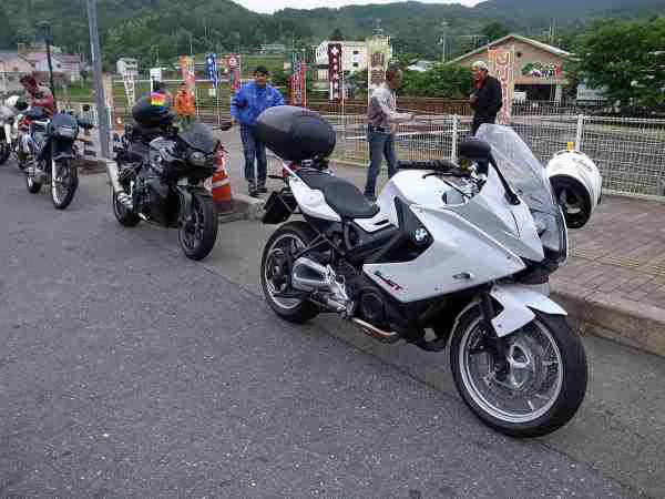 集合20分前に道の駅に移動してびっくり、何とさっき通り過ぎたのはルーキー夫妻だったのだ。ハーレーがBMWになっている、F800というモデルらしい、800ccというが大柄で綺麗な車体だ。続々到着する参加者も皆びっくり。スギさんが乗り換えても「今後は国産ですか?」と誰も驚かないが(同じバイクの方が話題になる)、ルーキー奥様はハーレーがあまりにはまっていたので、まさかという感じだ。