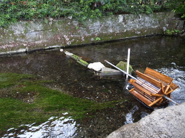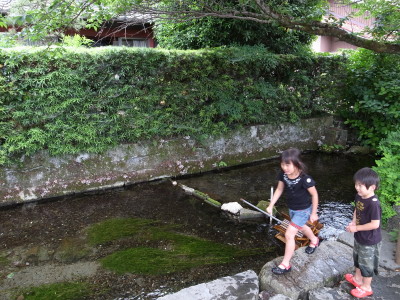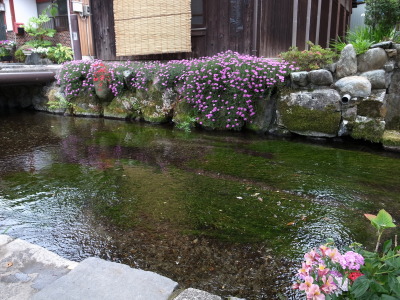 | ここの大きな魅力が、湧水から流れ出るせせらぎ。郡上八幡を思わせるが梅花藻(バイカモ)がゆらゆら揺れているのは涼しげで美しい。 |