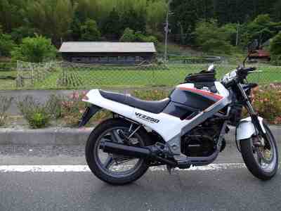 先行していたRip氏、姫やん氏、こたやん氏辺りはヘルメットをぬいでくつろいでいる。こちらも結構なペースで走ったんだけどな・・・。5分程で写真撮影切り上げたren氏が到着。今日はZZR1400ではなくRYUBEでは初お披露目のVTZ。このバイク実は私が高校1年初めてバイクに興味を持った時、憧れたバイク。原付に乗っている連中はチラホラいたが、普通二輪は勿論高校生には手の届かない。あの当時は250ccがとてつもなく大きく見えたよなあ・・・。その初恋のバイクをしげしげと眺めていたらなんと「乗ってきたら」とren氏が言ってくれた。大事なバイク、一瞬躊躇したがこんなチャンスは無いとキーを貰い出発していた。車体は小さいとは感じないが軽く、シングルブレーキが良く効く。コーナリングも軽快で、エンジンは怖くて1万回転以上は出さなかったが良く回る。エンジン以外、ブレーキングとハンドリングは明らかにZX-11より上なのが若干ショック(笑)。・・・初恋の人との熟年デート、最高でした。