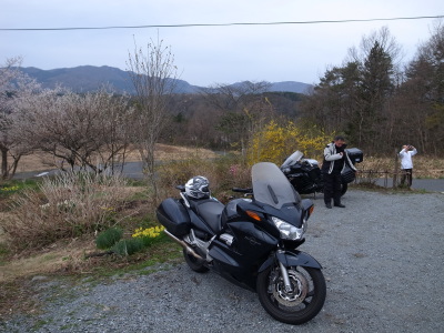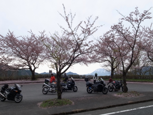 明地峠の駐車場。前回もここでゆっくりした。桜と大山!ハプニングもあったが、なんとか大山は満喫する事ができたのでは。次はいつになるのかな?明地峠を出発すると大山からは離れあとはひたすら山間の道を南下する。先頭を走るガッキーさん、半端無いスピードでどんどん前を行く。その後をついていくブラさん、はるさん、姫さんもたいがいだ(笑)。BMW F800を颯爽と駆ける姫さんのライディング、久しぶりに御一緒したが相変わらず格好良く、コーナーをクリアしていく。私は前の5人についていくのが必死。こんなペースで走るものだから予定よりも早く9時前には新見ポプラIC到着した。う〜ん楽しかった!後に子忍者君に「大阪よりよっぽど九州の方がペースはやいね〜」と声を掛けたら「普段はあんなに飛ばさないよ〜」との事。