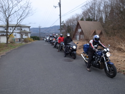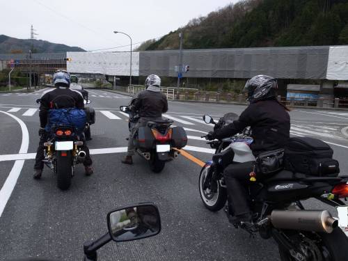 出発を待つ九州・大阪メンバー。RYUBE大阪は普段各々勝手に走るのでこうやって並んで待機、なんて非常に珍しい光景。たまには普通のツーリングクラブらしく走るのも楽しいものだ。ナビを装備する私が再び先導させて頂く事に。