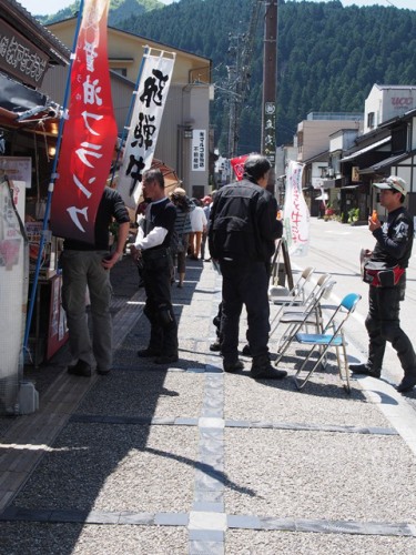 もうええ天気でございます。ここでインナーを脱いで半袖で♪郡上八幡の安養寺駐車場、バイクは250円ですもうこの段階で節子の呪いは溶けてたようですね、皆様順調♪パンク修理も腕前が良かったようで(笑)