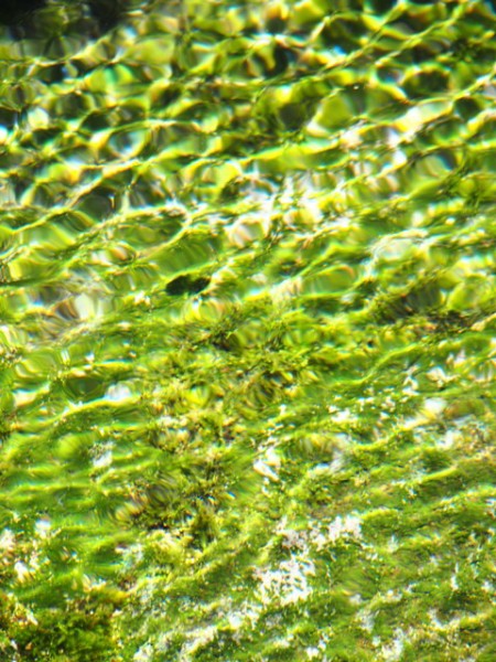 緑なのは水中のコケ?(藻)の色が反射して宝石のようですわ♪