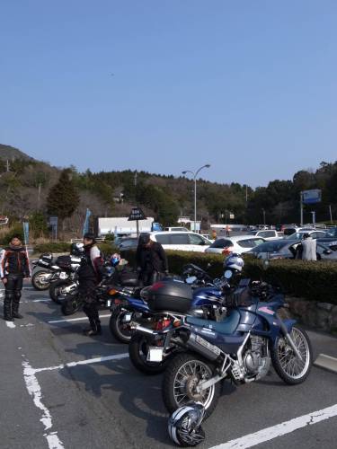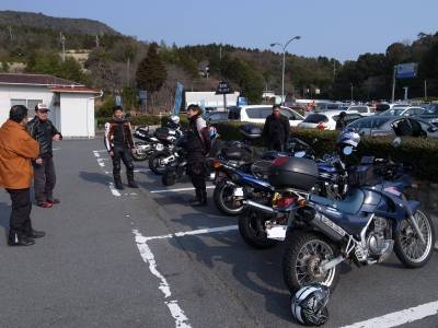 | 体調不良で残念ながら直前不参加となった奥様の指令を履行すべく、ルーキー氏は黒井山に直行。残る3台で七曲方面に向かう。 去年はここでひめやん氏マシントラブルでリタイヤだった。今年は原因突き止め愛車も快調。 予定に無かったが道の駅「みつ」で一休み。寒くはあったが天気予報は良好。8時半過ぎにも係らずバイクが結構来ていた。 |