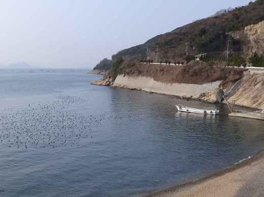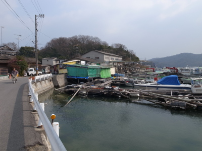 | 外に出るとのどかな瀬戸内の漁港風景。波が全くなくて湖のような景色。学生時代反対側の四国で1年程海で過ごしたので、この海面を見ると懐かしい。 | |